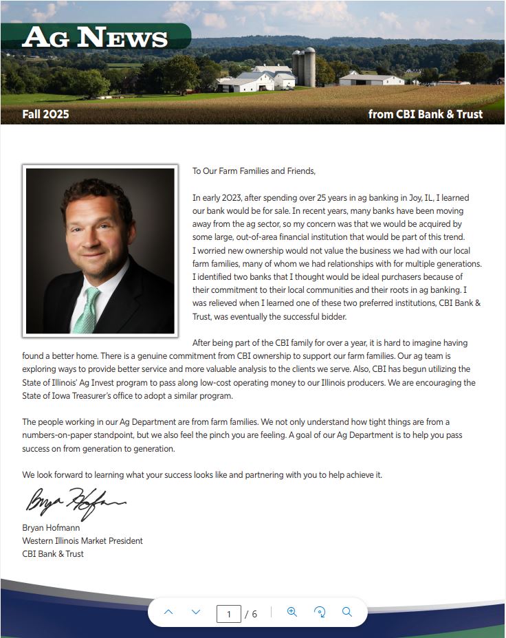 CBI Bank & Trust Financing For Agricultural Loans